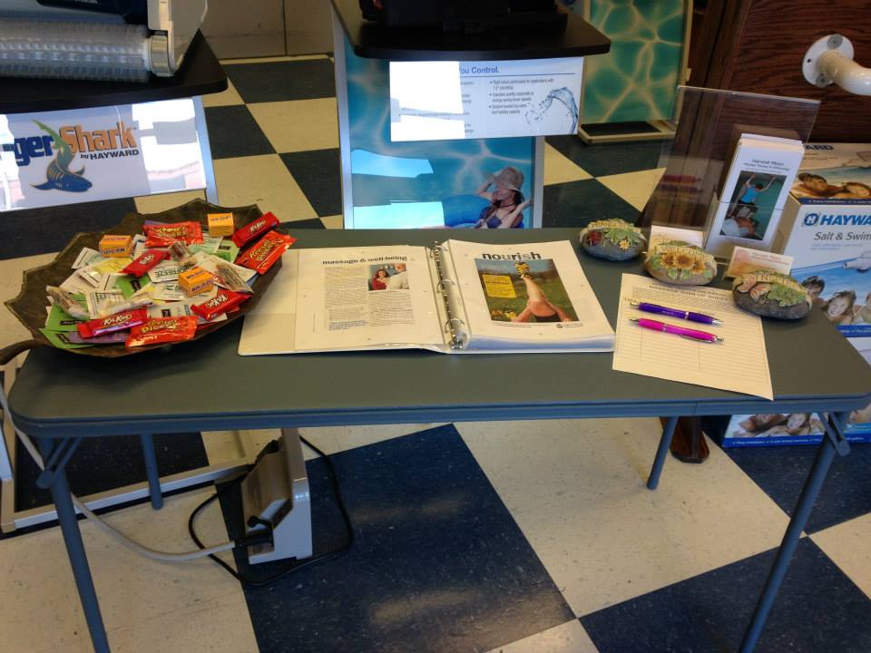 The Pool Doctors in Decatur, AL were kind enough to let me come to their business October 25th and set up to provide free massage for their employees and customers. I think there were 6 takers in the short time I was there. We had a lot of fun and plan on doing it again next year. Be ready!