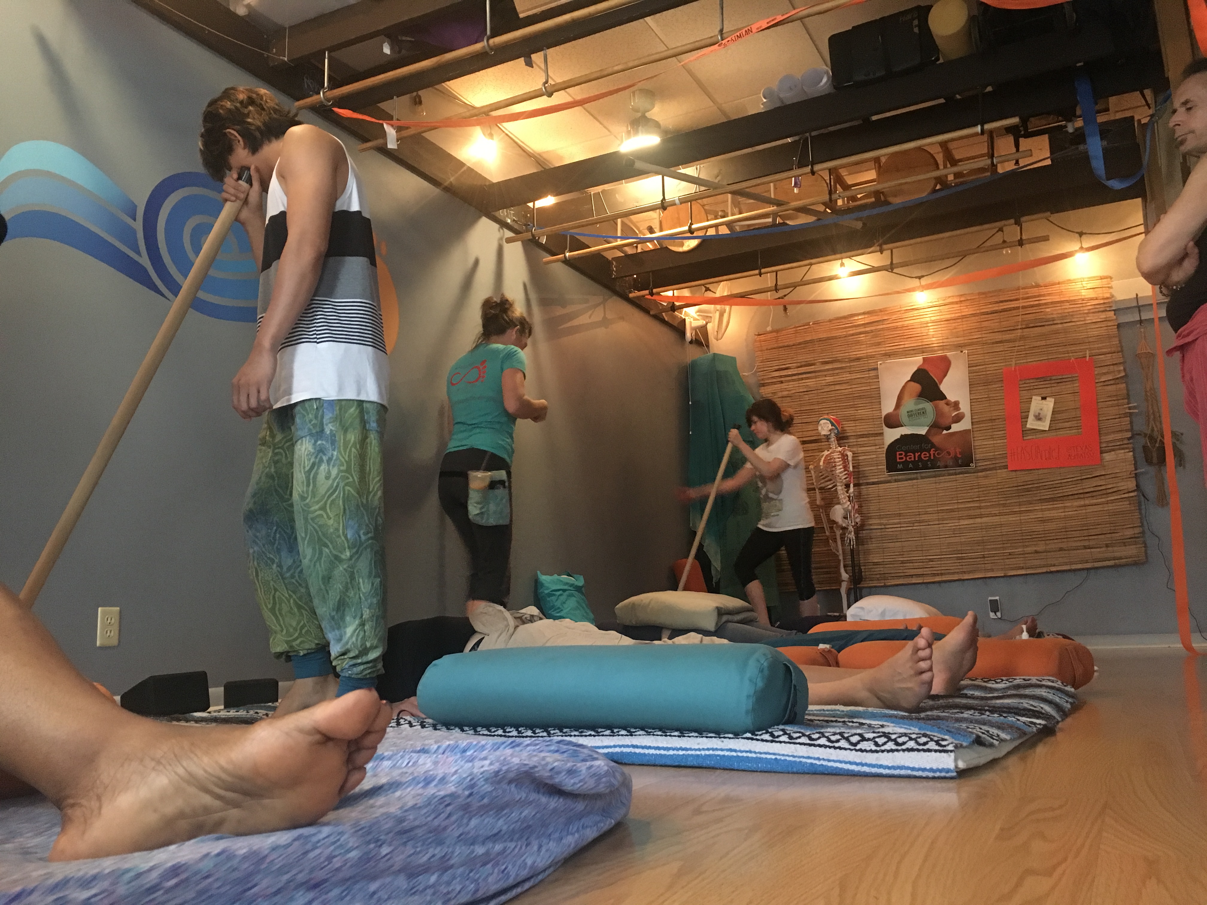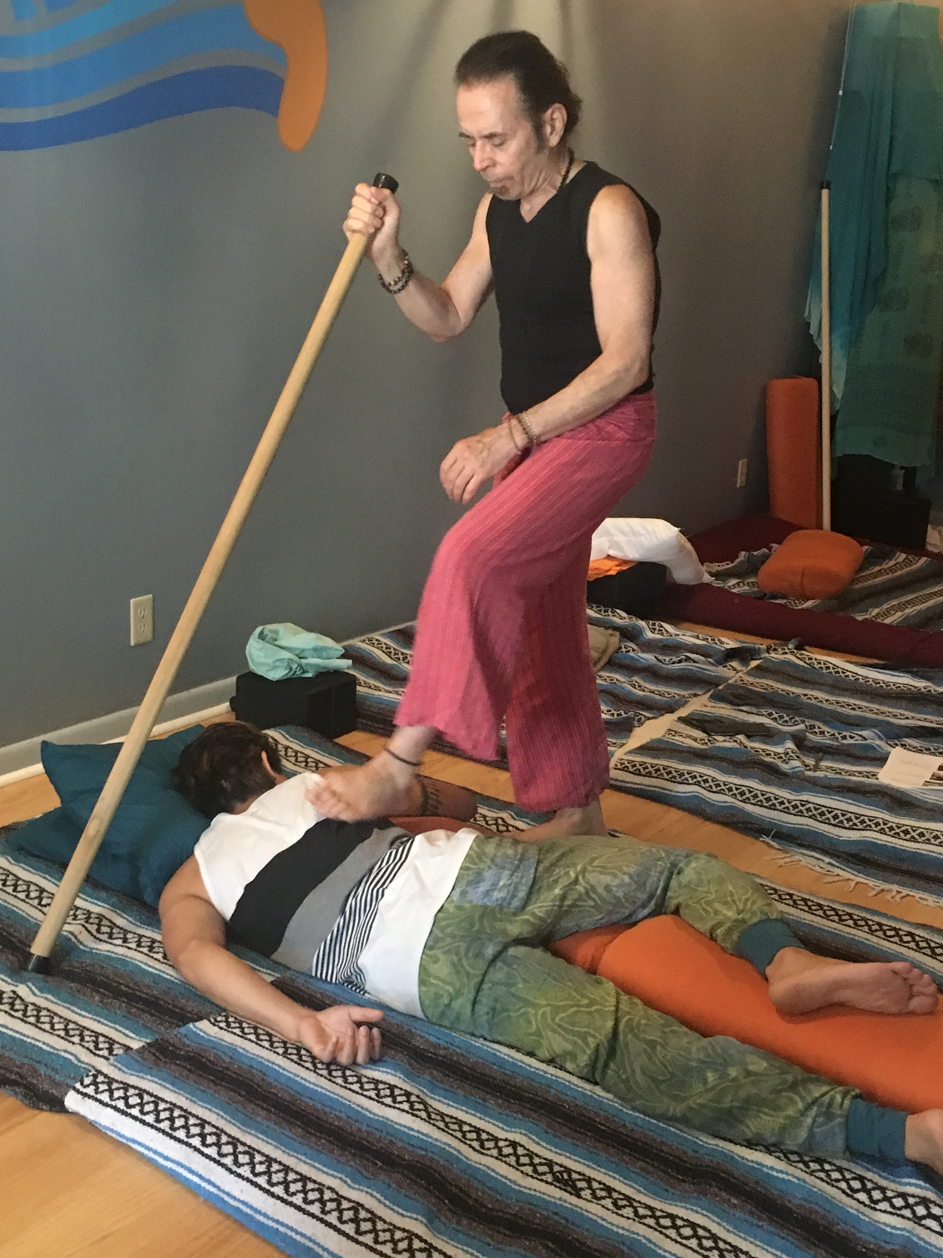 Randy Cummins was teaching a Barefoot Shiatsu class when I arrived. I got to observe and be the demo body for neck and shoulder work. He put his foot on my forehead during one of the moves and it was AMAZING!